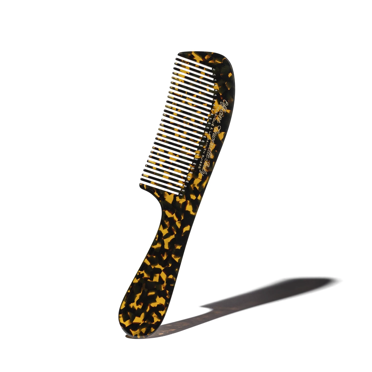 Ce grand peigne à poignée « Le Mastodonte», parfait pour les cheveux longs et épais, est aussi plaisant à la vue qu’au touché. Fabriqué dans un acétate de haute qualité à la main, ce peigne affiche fièrement son design soigné tout en courbes : son manche arrondi permet une prise en main idéale et la courbe des dents s’adapte à merveille à celles de la tête, rendant le coiffage plus agréable.