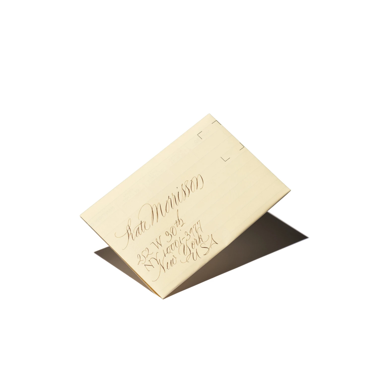 – Notre Maître-Calligraphe se charge prestement d’inscrire votre message, l’adresse et le nom du destinataire